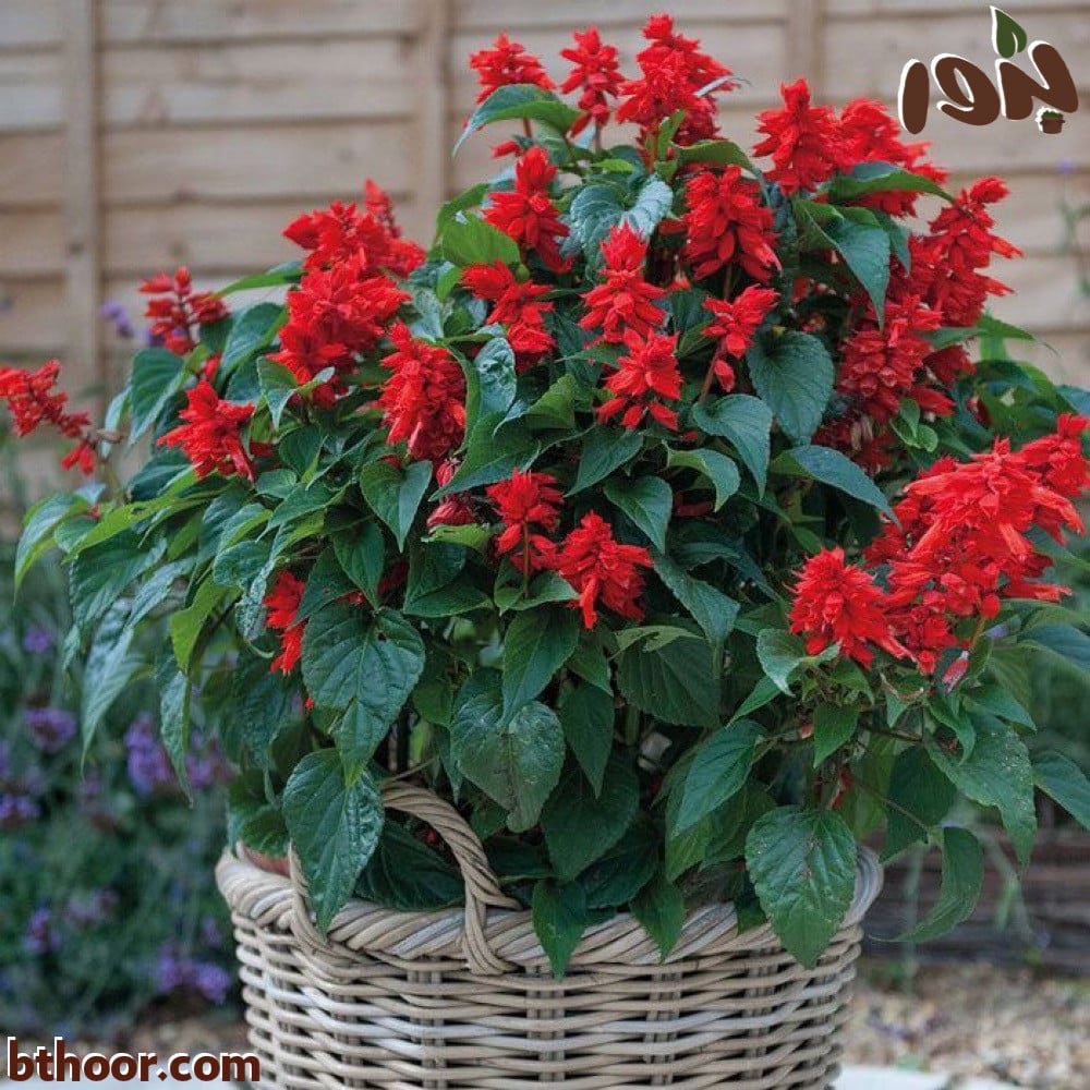 •أزهاره الجميلة بعدة ألوان منها الأحمر والأصفر و الأزرق الحمامي وتأتي على شكل شماريخ متقابلة وترتفع هرميا، تتميز بملمسها الناعم ورائحتها العطرة.