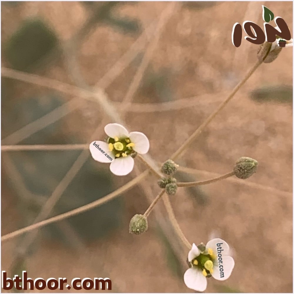 • أزهارها صغيرة الحجم لها اربع بتلات تأتي بيضاء او بنفسجية اللون.